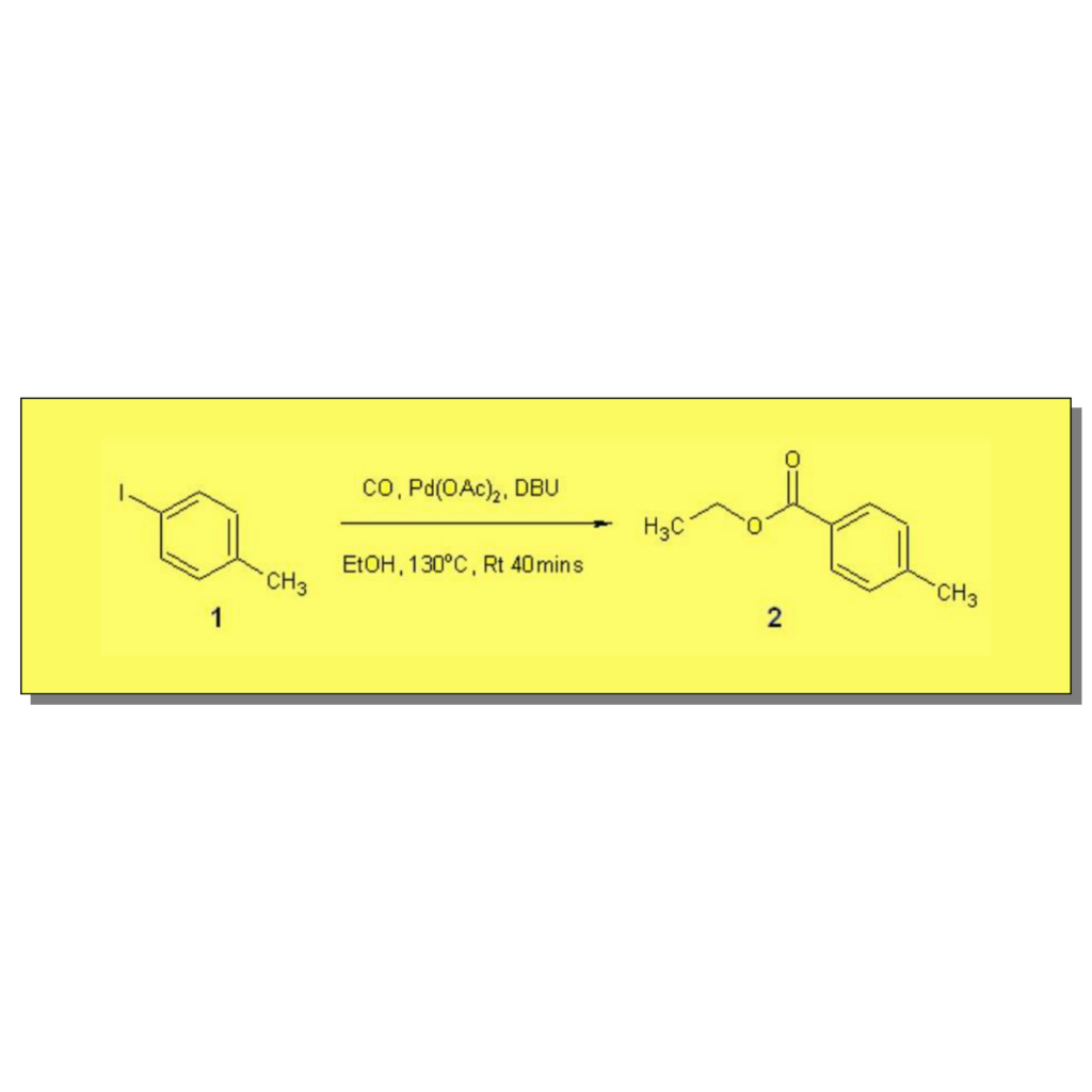 This example illustrates the use of the new Vapourtec tube in tube gas reactor combined with the Vapourtec R-Series system to react reagent gases under pressure without the use of scale limiting pressure reactors (e.g. Parr ‘bombs’). Here we describe the catalytic ethoxycarbonylation of iodotoluene with CO gas.