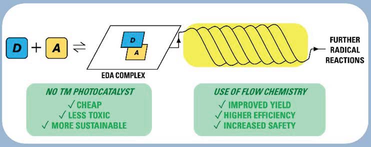 In recent years, electron donor-acceptor (EDA) complexes have emerged as sustainable, cost-effective, and inherently safer alternatives to traditional transition metal-based photocatalysts in photochemical processes. Formed via the association of neutral electron-rich and electron-deficient species, EDAs offer an environmentally benign route to radical generation across a broad spectrum of reactions. Concurrently, flow chemistry has gained prominence as a burgeoning area of scientific inquiry, enhancing reaction control, safety, mixing efficiency, and, critically, light penetration. In this mini review, we highlight recent works that have explored the use of EDA photochemistry with flow methodologies, while assessing both the promising practical advantages and current limitations in bringing these two fields together.