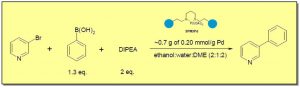 In this application, a Vapourtec R-Series has been used to achieve rapid reaction times and high conversion of a Suzuki coupling, using a commercially available supported palladium catalyst. With a reaction time of just 1 min 15 seconds, it was possible to achieve yields of over 80%, at greater than 95% purity following a simple chromatographic separation. This application demonstrates how the Vapourtec R-Series can be used as a tool for the synthetic flow chemist, or for a development chemist beginning the scale up process.