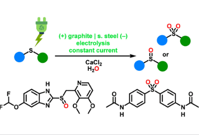An electrochemical method for the selective oxidation of thioethers to sulfoxides or sulfones has been developed. The method is based on the use of an electrolyte comprising safe and inexpensive CaCl2 in a MeCN/H2O solvent system. Apart from enabling the selective synthesis of sulfoxides or sulfones by simply tuning the electrolysis conditions, the procedure has been shown to be amenable to complex structures. Thus, several active ingredients, including pantoprazole, lansoprazole, or dapsone have been synthesized using this electrochemical methodology. An additional advantage of the CaCl2/MeCN/H2O electrolyte system is that it is homogeneous, enabling processing in a parallel plate flow electrolysis cell, and thus ensuring that the procedure can be scaled up and transferred to commercial settings. Additionally, the electrolysis protocol has also been translated to a spinning cylinder electrode electrochemical reactor, which can also be operated in the flow mode. In this reactor, excellent reaction conversion and selectivity for the challenging electrochemical synthesis of pantoprazole from the corresponding thioether precursor has been demonstrated on a multi-gram scale.