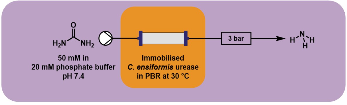 Researchers from the Los Alamos National Laboratory in the USA have assessed various strategies for immobilization of enzymes on solid supports, focussing on immobilization efficiency, protocol simplicity and the kinetics of the model enzyme, C. ensiformis (Jack bean) urease.[1] The best solid supports were then selected for production scaleup using a large-scale continuous flow set up, the Vapourtec R-Series modular flow chemistry system, where product yields, operational stability and long-term stability were all readily assessed. It was found that the immobilization technique had a clear impact upon enzyme stability and performance.