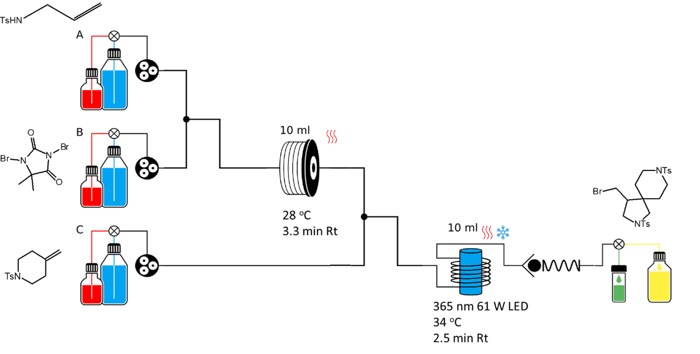 In the recent paper entitled “Multicomponent Direct Assembly of N-Heterospirocycles Facilitated by Visible-Light-Driven Photocatalysis” (1), the Ley group demonstrates the use of the Vapourtec UV-150 photochemical reactor in the synthesis of complex spirocyclic compounds under mild conditions.